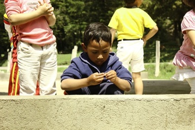 The preschool of Parcelamiento, Guatemala does not have any running water. Therefore, each student has to carry their own water to school each day – one portion of water for hand washing and another portion of pure water for drinking. The students range from 2-5 years old, and have to walk with their parents each day carrying these quantities of water. For this lesson, the school borrowed extra water from a neighbor, which the programs team used for the demonstration with the children. Using antibacterial soap, small buckets and clean towels, the hand-washing lesson was a big success!